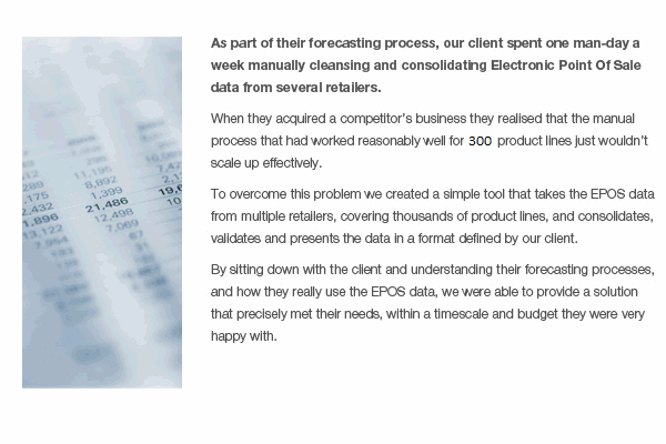 processes. We never lose sight of the fact that you may not need the latest all-singing, all-dancing package, but a solution that delivers the right result for you at the minimum cost.